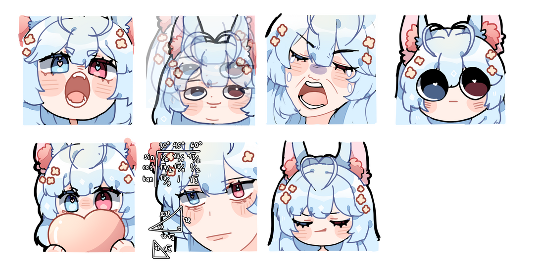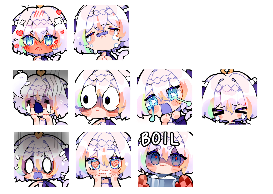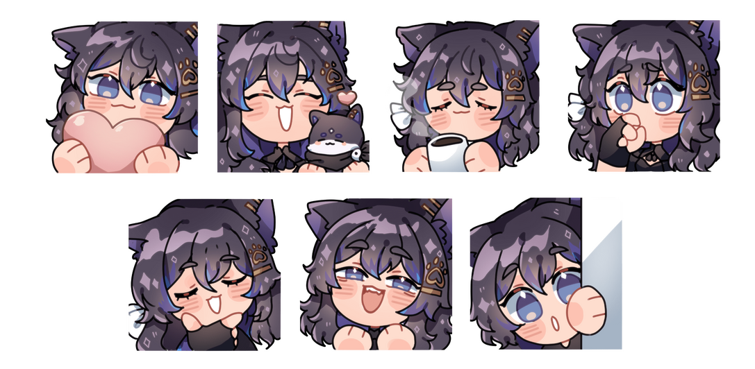 ✦ If you ever get an updated model, ( a 2.0 etc ) updating a batch of emotes would be 50% off ! ( as long as I would be tracing my own old emotes to match your new model )